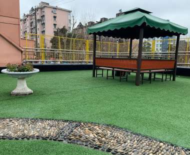 南京市雨花康爱托老公寓公寓设有300余平方米的屋顶花园,其中有百余平方米的健身房及娱乐休闲场所。