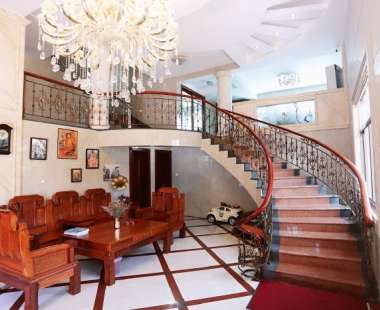 整栋别墅结构如下:一共有5层楼,目前再售的仅有2套独立套房,分别是三、四楼。此链接为其中一套哦~ 一楼二楼为公共区域,三楼四楼为独立套房区域。五楼为待开发区域。六楼天台赏景区域。 1、一楼loft吊顶水晶灯豪华复古风大厅,还配有茶室,客厅及卫生间。 2、二楼超大厨房、餐厅、会客小厅及卫生间。 3、三楼中式套房。 4、四楼欧式套房。 该套位于四楼,属于法式欧美风套房,艺术感浓厚,面积超大,居住舒服。套房内有4个卧室,2个卫生间,1个客厅,1个阳台,其中三间卧室各有1.8米床三张,一间儿童房有1.35米床两张。 5、五楼暂时闲置。 6、六楼观景天台,可看见龙凤头海滩和平潭城貌。豪华装修,感受下土豪家的日常。 1、可做饭,超大厨房和餐厅。需使用费50元/天。 2、独立别墅,一楼二楼空间可使用。周围空间大,门口有绿植,家门口即可停车。 3、顶楼可观海,俯瞰全城。 4、别墅共有两套套房,不同风格满足多种需求,房内适合拍照,也是一道风景哦!