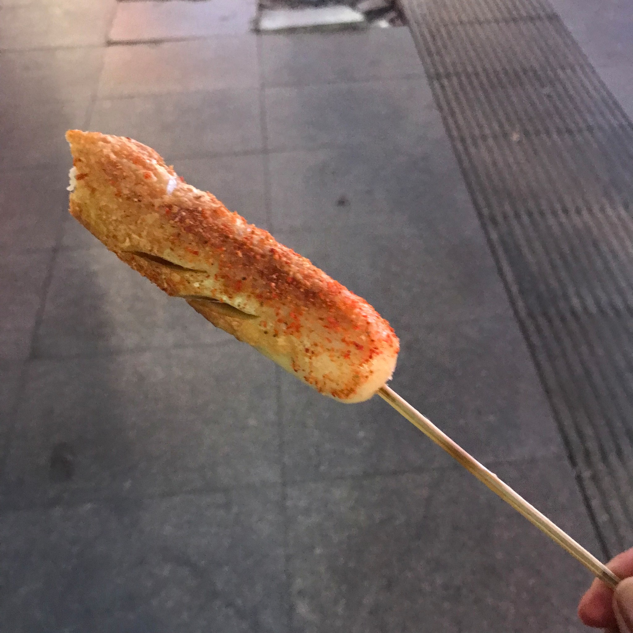 长春 烤肠(和别的烤肠不一样,烤肠是白的),吃起来绵绵的;就街边上拉着车叫卖,到处都有,3块钱一根。