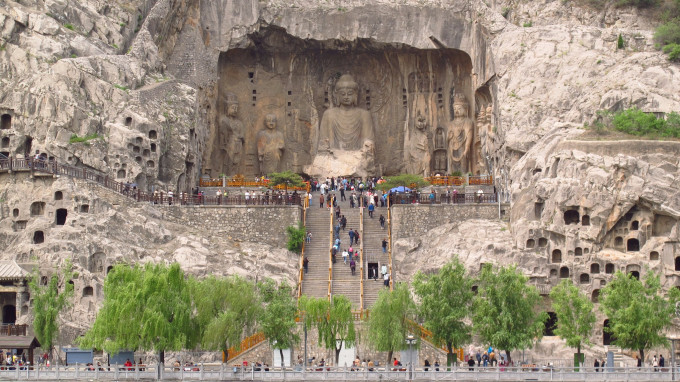 龙门石窟是 中国 石刻艺术宝库之一,现为世界文化遗产、全国重点文物保护单位、国家AAAAA级旅游景区,位于 河南 省 洛阳 市洛龙区伊河两岸的 龙门山与香山上。 与莫高窟、云冈石窟、麦积山石窟并称 中国四大石窟。
