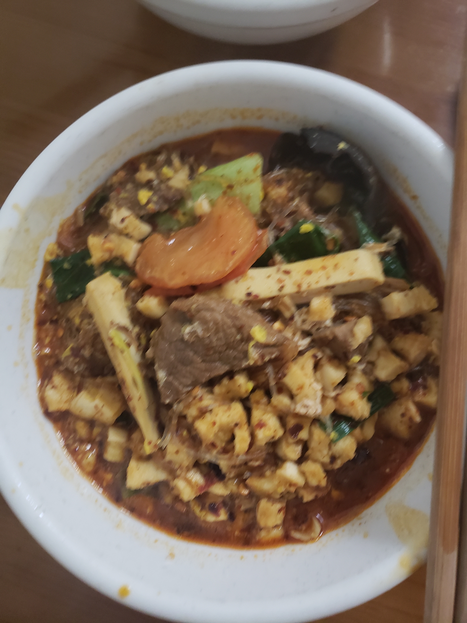 当然外面路边有各种肉夹馍供君挑选,这个就看个人口味了。有一个咸蛋黄的,听说还不错,但是鉴于我不吃咸蛋黄,就试了一个纯牛肉,一个秘制菜馍。还行,无功无过吧。