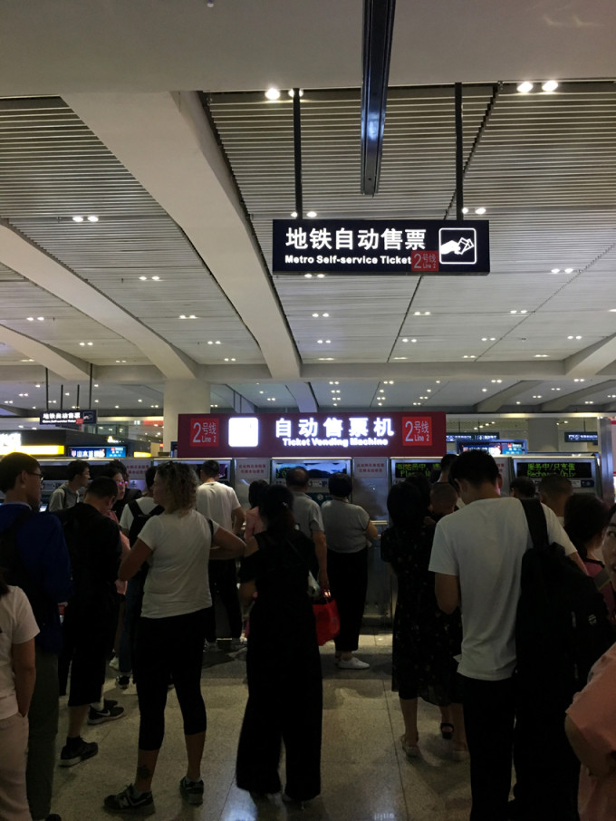 高铁站的内部设施 各城市都大相径庭,出了闸口,我们径直去自动售票机前买地铁票。