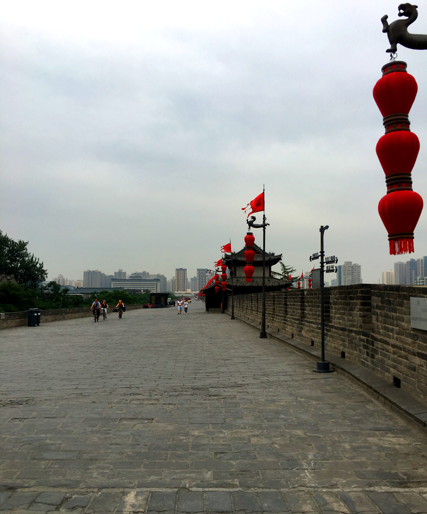 景区别出心裁,在城墙上设有自行车租赁,可以供游人骑车环城一周,给沉闷的古建筑 增加了点活力。
