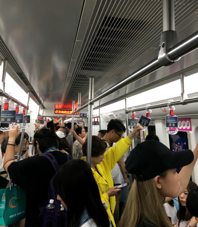 这时正值下班晚高峰,地铁里人挤人哦,西安城市 人口马上过1000万咯!