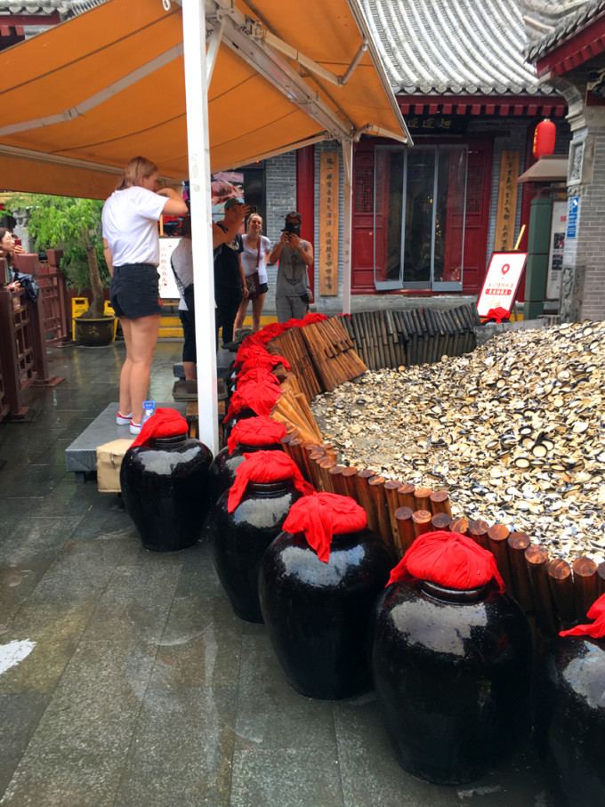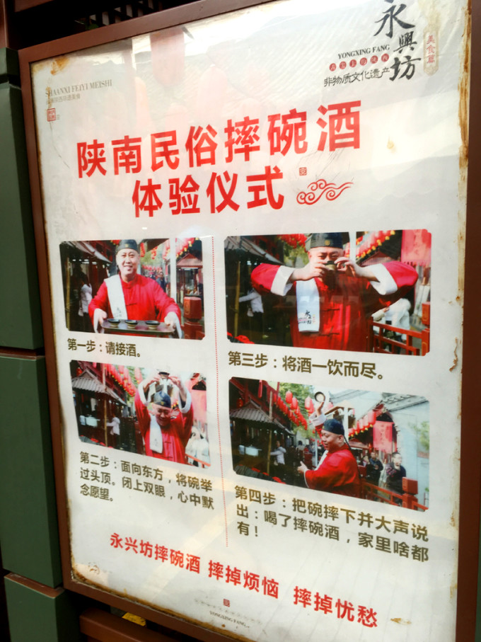 据说是抖音带火了 西安 旅游,更是火爆了摔碗酒,就此 永兴 坊成为了网红打卡地。不论什么时候来,这里每天都会有大量游客排队摔碗,一碗酒是5块钱。游客排成一队,集体喝酒然后摔碗,只是不知道这酒是真酒还是饮料或还只是水呢?当然这些都不重要,对于大家来说喝完使劲摔出去才是重要所在。