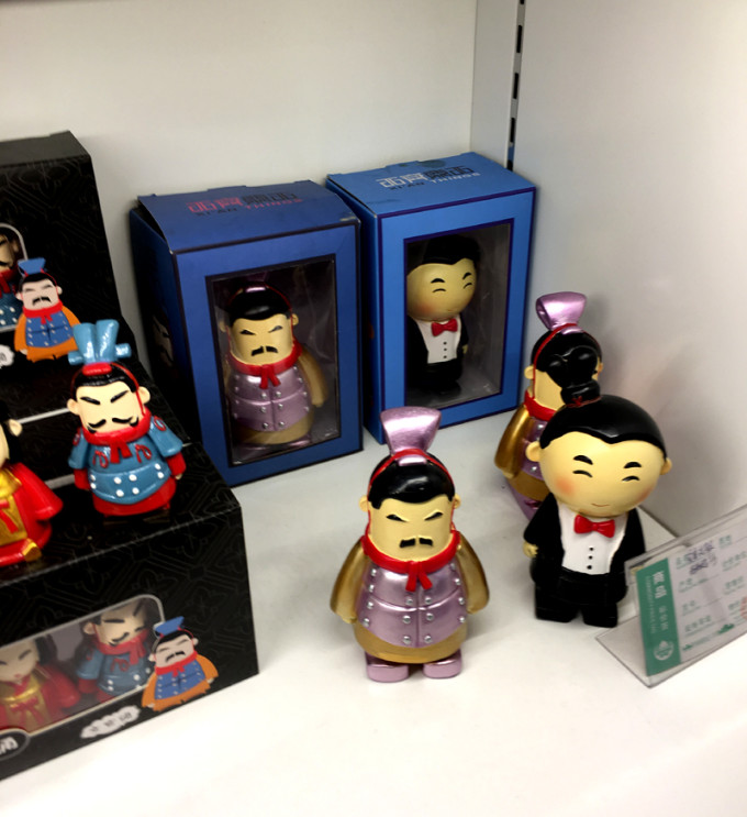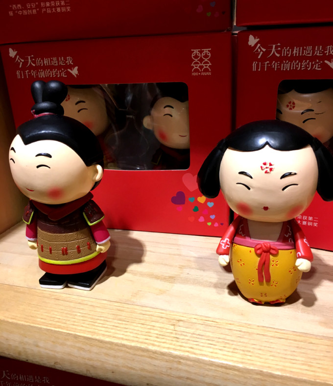 二楼是卖旅游纪念品的专柜,有 西安 历史 人文风情相关的各类小饰品 服饰 零食 工艺品等等 令郎满目,我看了 觉得价格有点小贵,一个钥匙扣要30,一套明信片要50,一件文化衫要60...