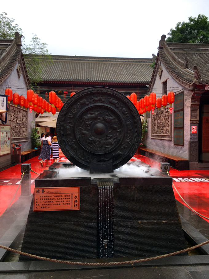小雨淅淅沥沥的,逛坊的游人依旧不少,走过牌坊,就是面铜铸镜鉴。