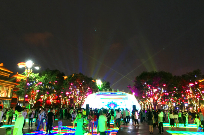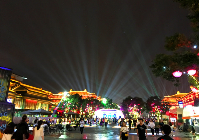 大雁塔南广场街对面就是大唐不夜城了,这个景点是2009年 新建 的。南北长约1.5公里!以盛唐文化为背景,以唐风元素为主线,着力打造集购物、餐饮、娱乐、休闲、旅游、商务为一体的一站式消费时尚步行街。