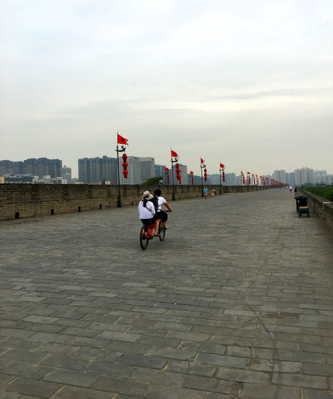 在古城墙上得瑟了一会儿,天公不作美,下起小雨了,骑自行车的人惨了,还得冒雨骑回来还车。