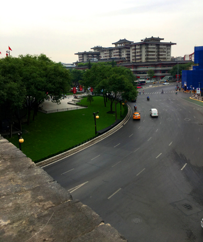 第一天起了个大早,6:30起床, 西安 是个阴天,远看城墙内的老城区。