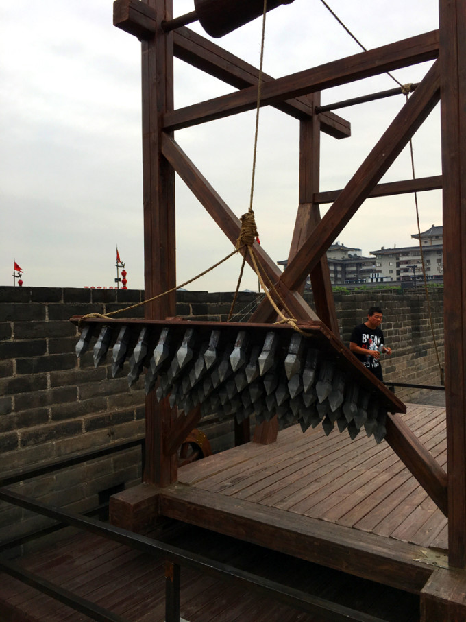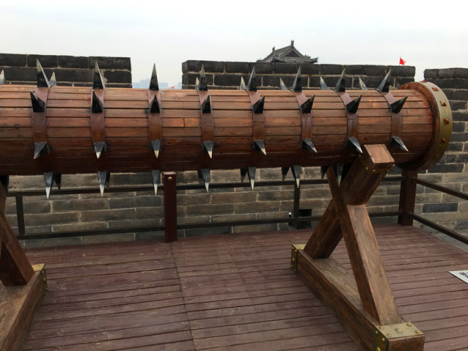 展示了一些古代城防器具,滚木雷石,下手真狠啊!