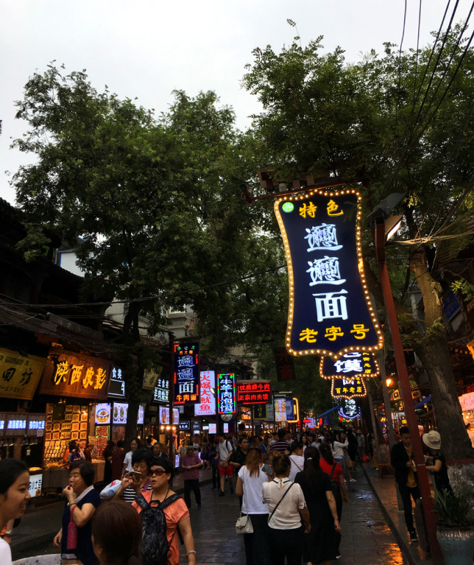 天下着雨,回民街依旧游人如织,摩肩接踵,热热闹闹 看来大家食欲都很旺盛。