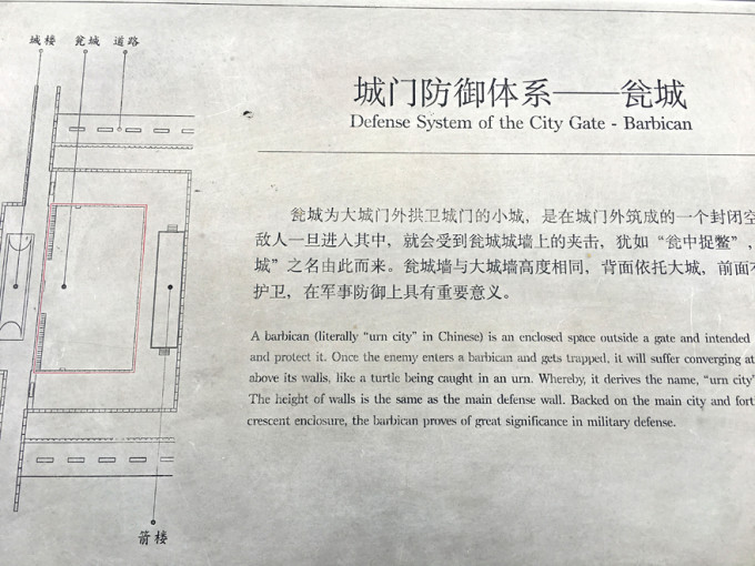 可以看出外城的箭楼很宽,三排射击孔,明代的城防严密。