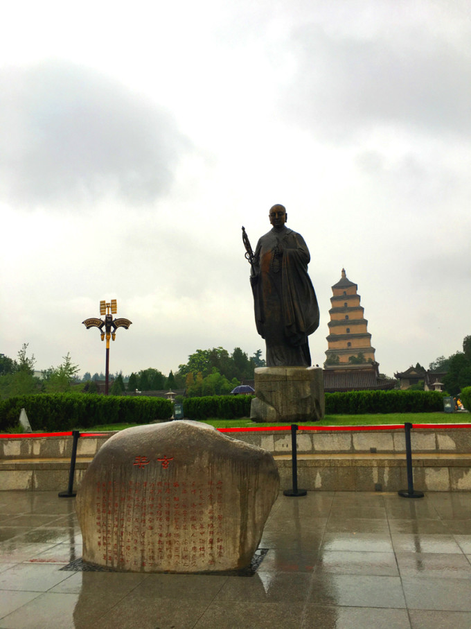 这会儿来了一伙夕阳红旅游团,纷纷拍照。听着有人说:“这个是西游记的唐僧,来拍一张拍一张...” 看来明朝人吴承恩给玄奘做了大大广告了。