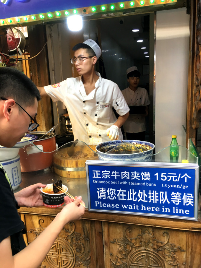 这里你能品尝到正宗 西北 风味的肉夹馍、五花八门的面食、烤架上滋滋冒烟的红柳烤串,以及“變變面”、“贾三灌汤包”这类招牌老店,口碑与美味兼得。