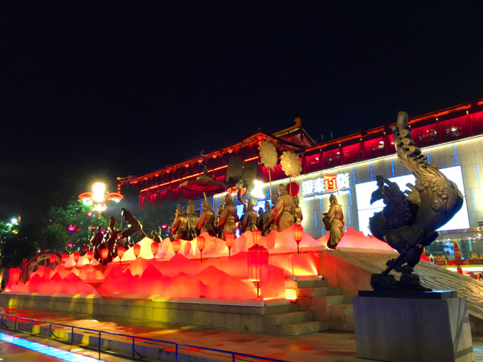 在 永兴 坊吃喝玩乐一个多小时了,改换换地方了,下一站大雁塔广场!