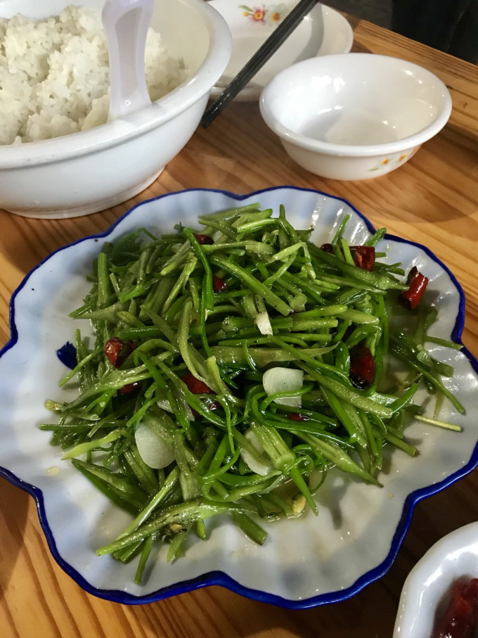 吃饭没有去那些网上推荐的餐厅,看了下性价比不怎么样,找客栈老板给我们推荐的当地人吃的小馆子,白族特色菜,下图第一个菜叫水性杨花