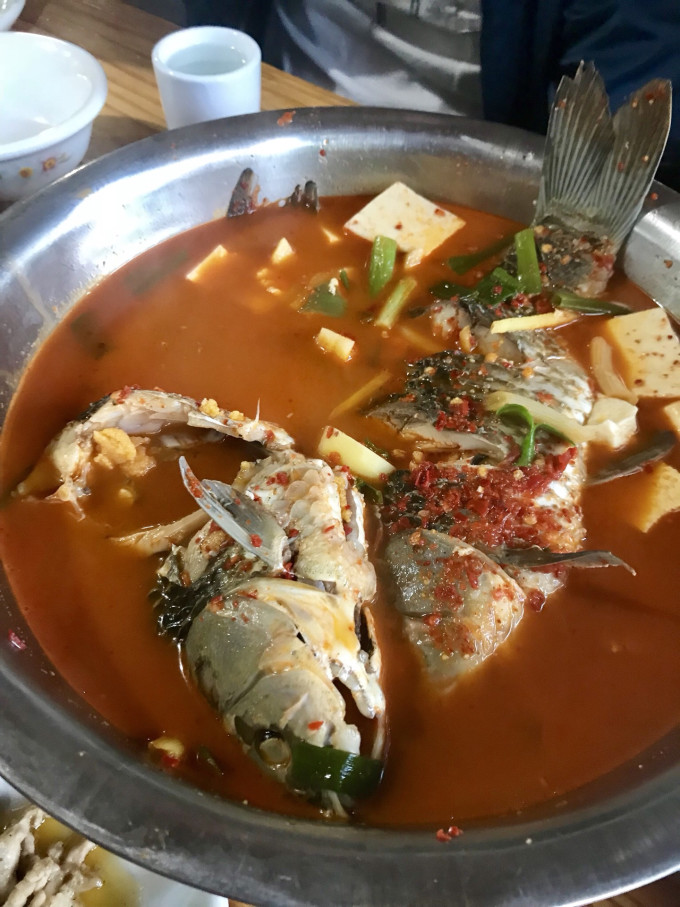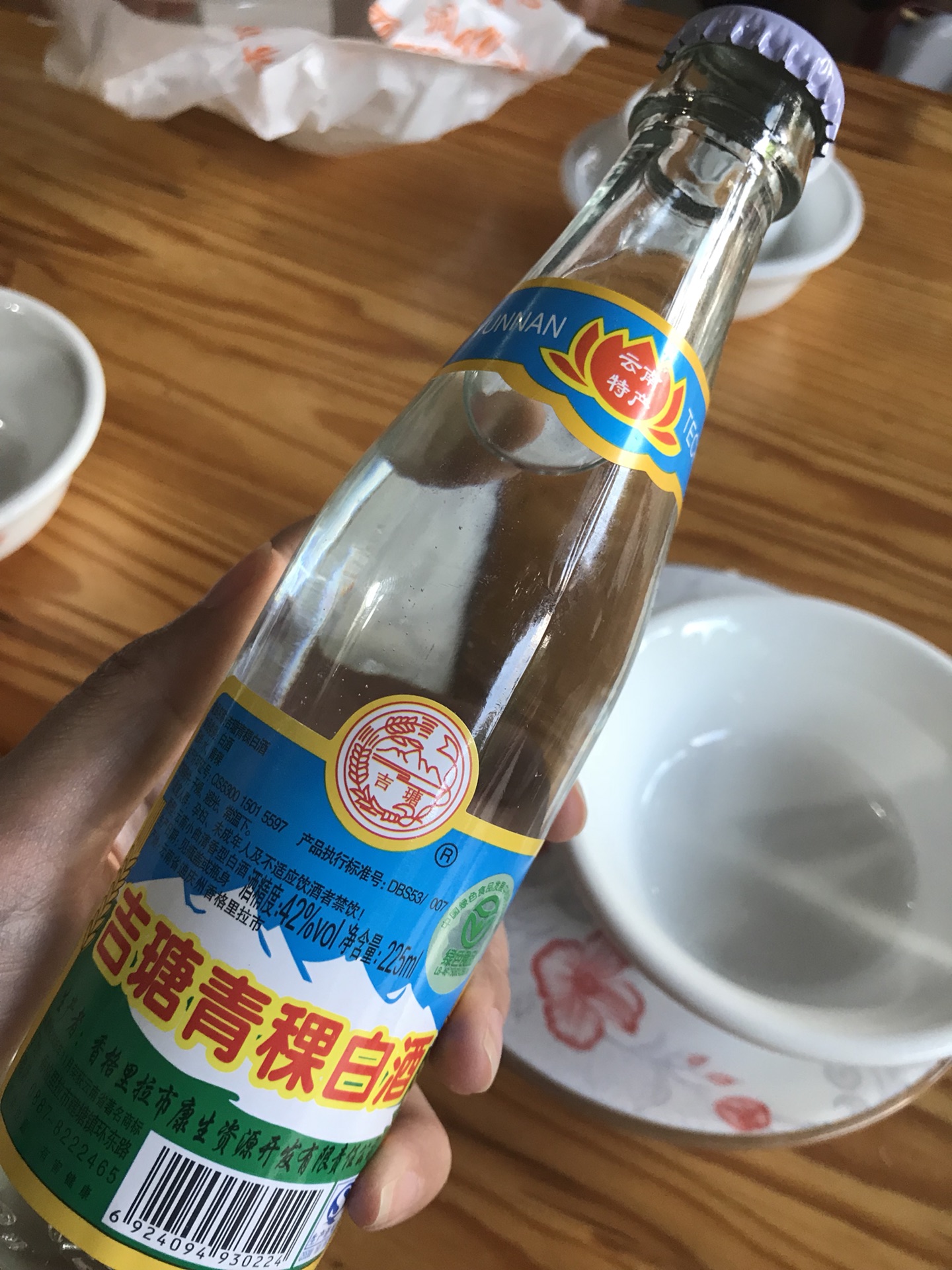 ,老板说这是洱海里面的一种水草,因为他的叶子飘浮在水面根在水下,所以起名水性杨花,味道类似于海木耳,鱼点的酸汤鱼,很开胃,酸味来源于小木瓜,跟水果那种青木瓜完全不是一个东西,当时一共点了4个菜,一瓶当地白酒,菜还没吃完,一共150元。4个人吃可以说是很奶思了。