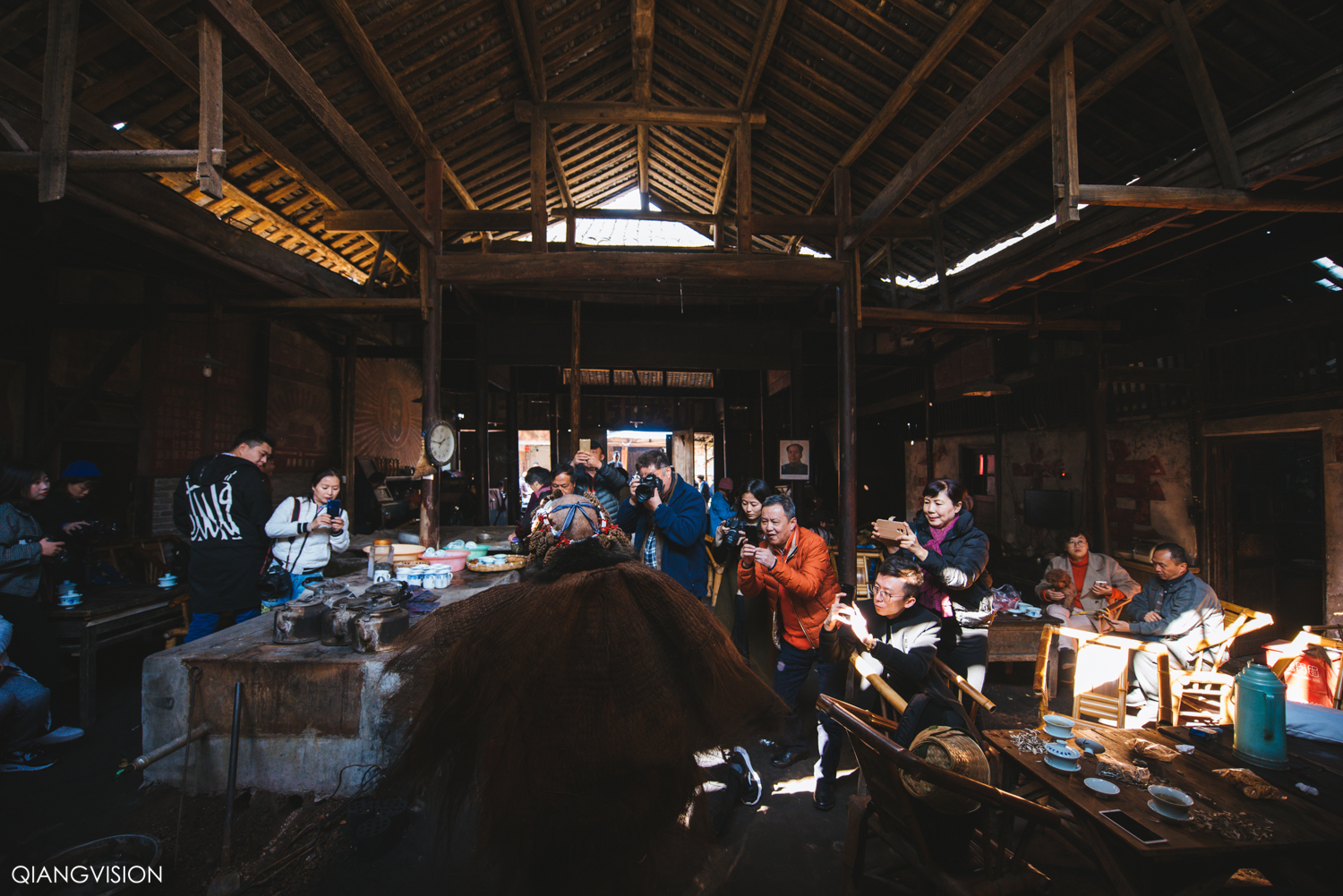 那些窜架的梁柱、斑驳的篱笆墙、长满青苔的大石缸、漆黑的老虎灶和千脚泥,这座始建于明清时期茶馆,仿佛时光隧道般将你带回百年前。