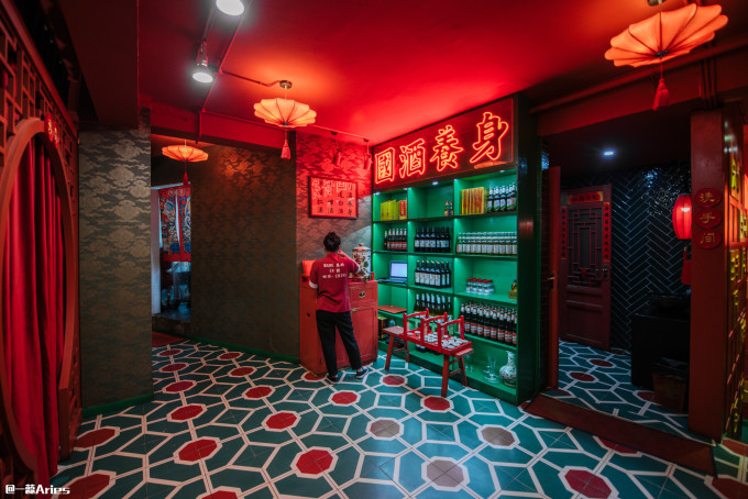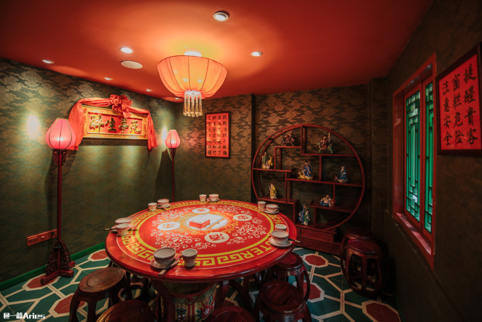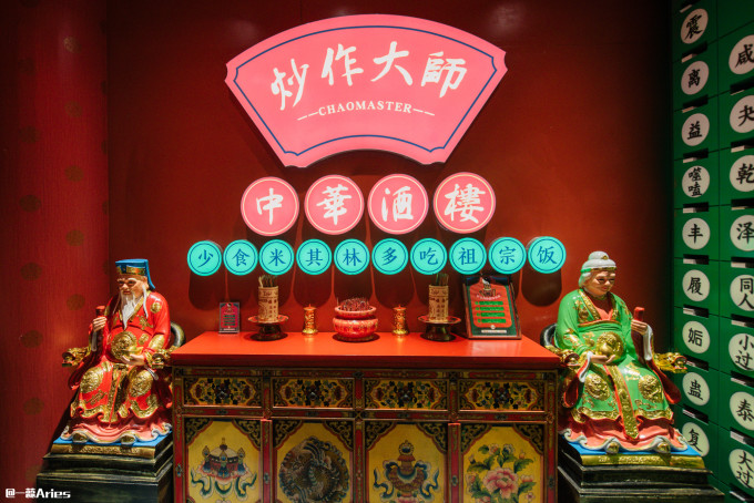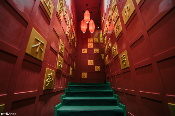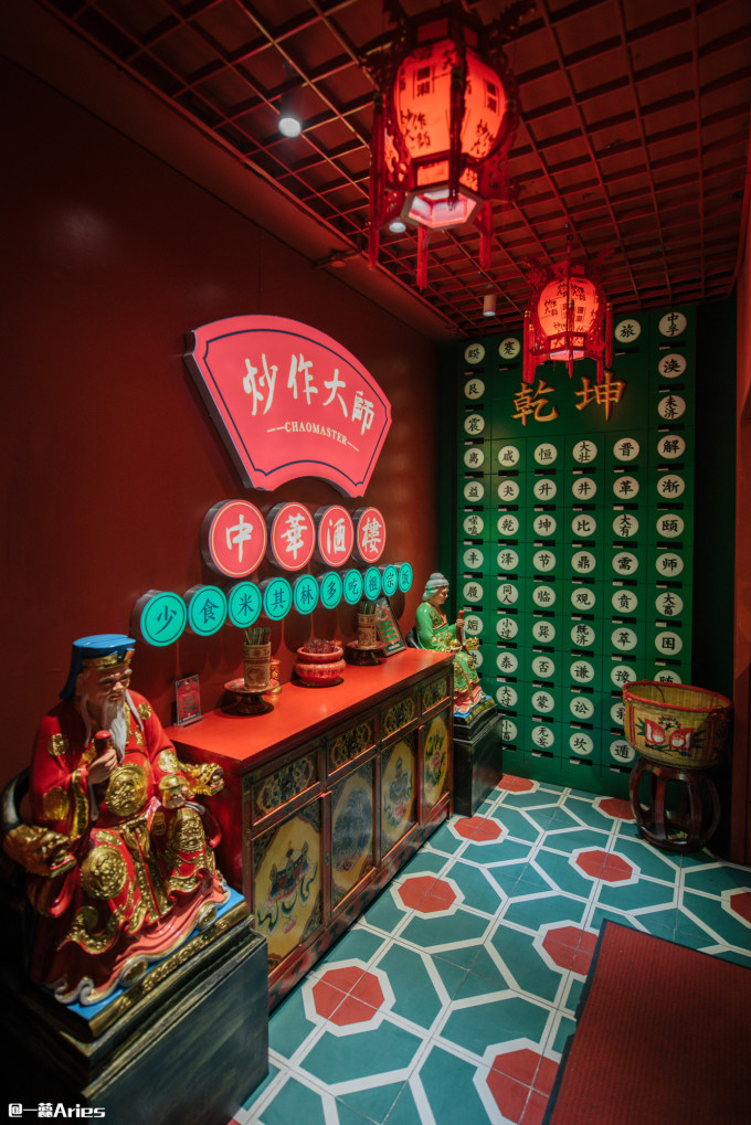大红灯笼、汉字、对联,像是走进了电影片场,所到之处全都是有中华文化特色的陈设,这“灯红酒绿的酒楼”真有点意思!