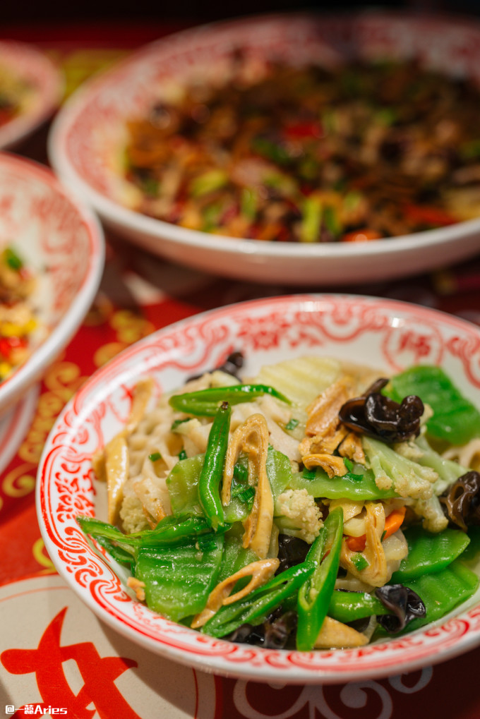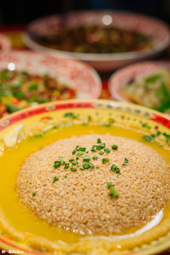 三敲报喜豆捞这道菜很有趣,豆汤上面罩着一个大锅巴,敲三下入汤,锅巴松脆可口,带着耙豌豆子的清香,各种鲜香汇聚在浓浓汤料里,这样的主食吃得相当过瘾。