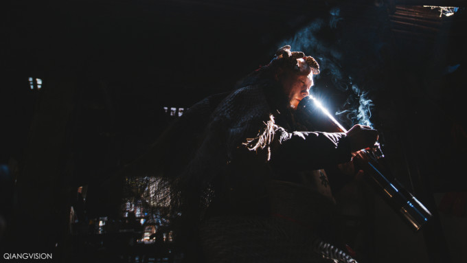 比如 这张一蕊拍摄的人像练习,就是在逆光的环境下,利用光线和烟拍摄的效果;室内黑暗的环境和亮部形成鲜明的对比,更加的突出主题。