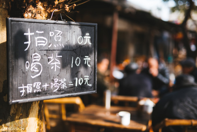 没有规矩不成方圆,老板规定:“ 彭镇 本地人一元一杯,外面的人来拍照喝茶十元一杯。”