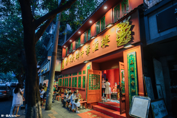 慕名前来,在距离宽窄巷子不远的上 同仁 路,一眼就瞅见这家《炒作大师•中华酒楼》,光是门头,就牢牢滴抓住了我们的好奇心。
