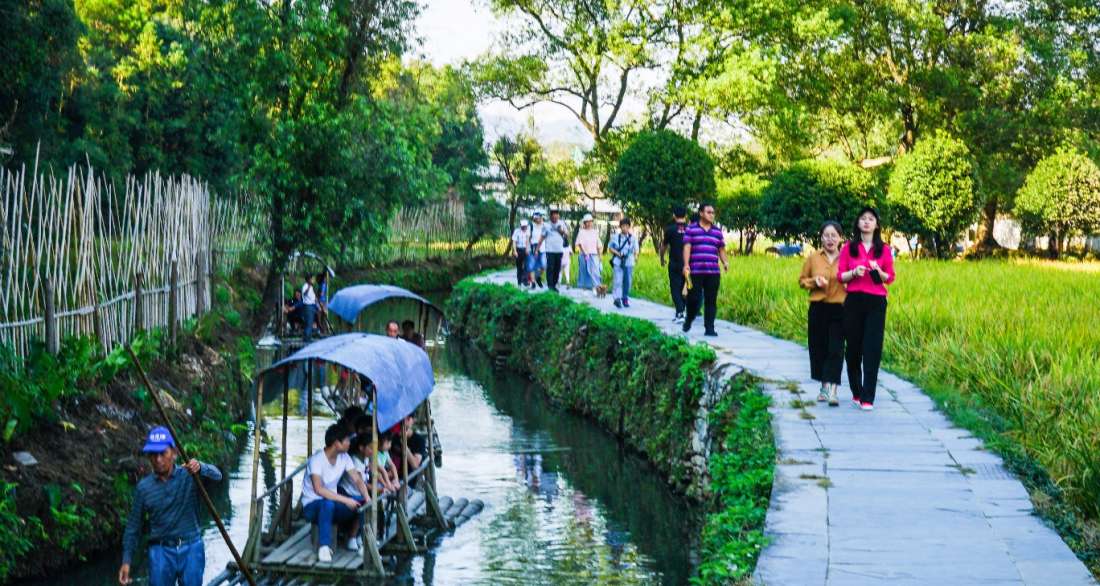 村内有拱桥、栈亭、寺庙和庭院,入村后,沿街店铺林立,主要出售这里特产的徽派木雕和龙尾砚,还有众多“农家乐”可住宿、吃饭。