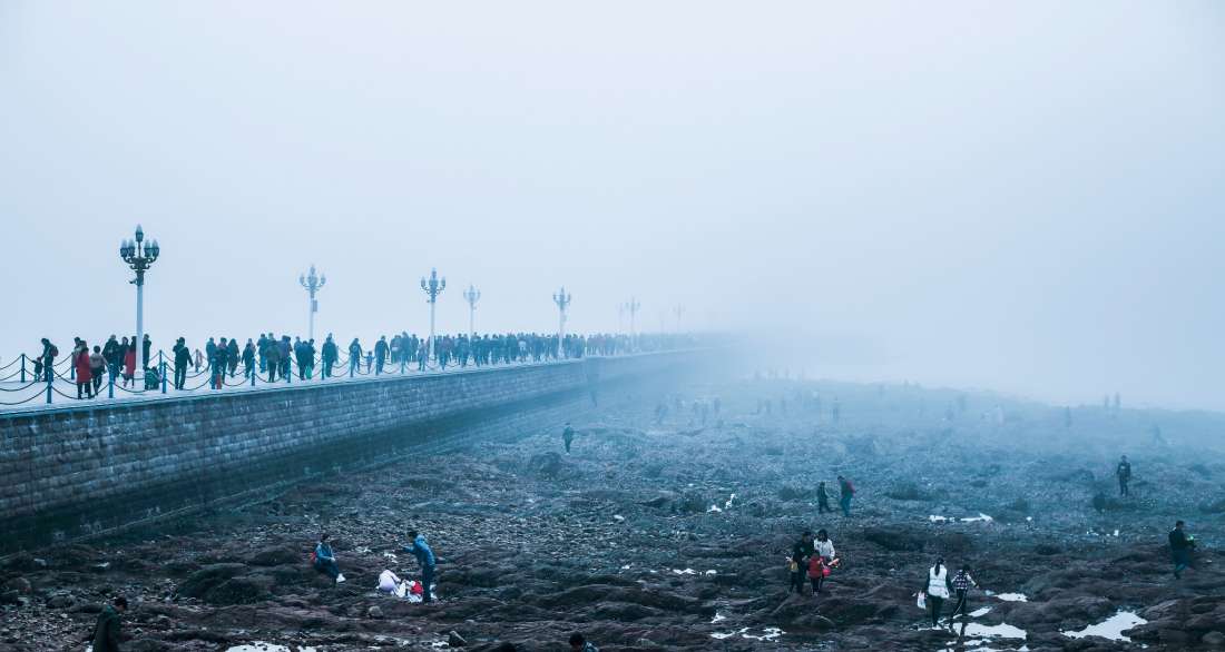南端防波堤内部的八角楼被称为“回澜阁”。伫足于此,可以欣赏到青岛十景之一的“飞阁回澜”。