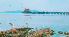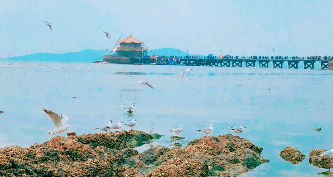 北侧沿岸被称为“栈桥公园”,园内花草郁郁葱葱,设有石椅供游客休憩,可以欣赏海天风景。