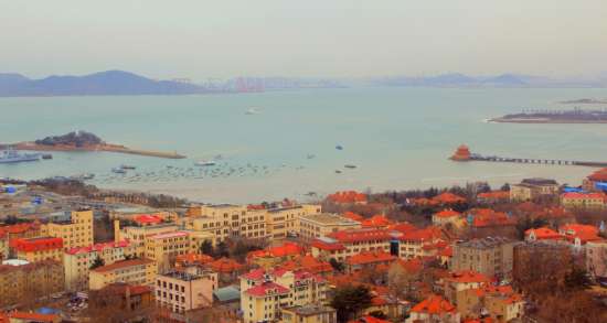 山顶三幢红顶蘑菇楼尤为显眼,其中最高的一幢是旋转观景楼,在这里你可以360度俯看青岛的景色。