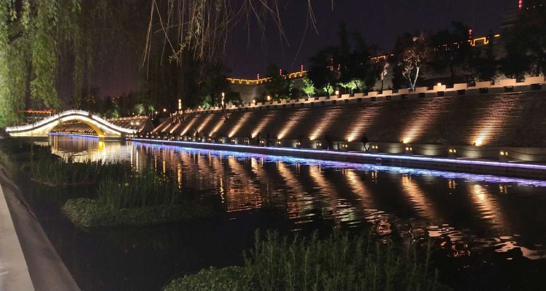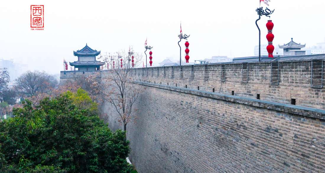 城墙周围有护城河环绕,著名的西安钟鼓楼就位于城墙中心。