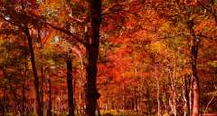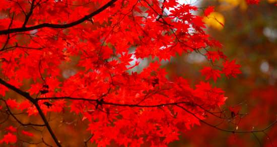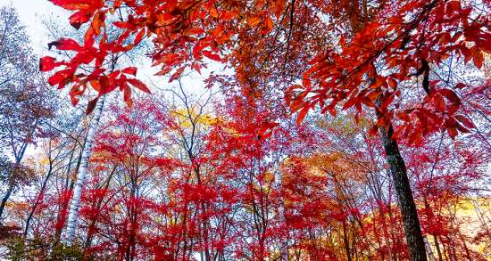 每年的金秋季节,这里红叶满山,如同落霞,非常壮观。红叶色彩丰富,在红叶形成的时间,同时还有绿色的叶子,黄色的叶子。