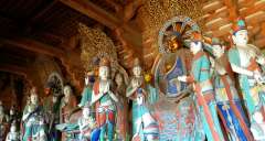 佛光寺历史悠久,寺内佛教文物珍贵,故有“亚洲佛光”之称。寺内正殿即东大殿,建于唐朝大中十一年,即公元 857年。从建筑时间上说,它仅次于建于唐建中三年(公元 782年)的五台县南禅寺正殿和唐大和五年(西元831年)的芮城县广仁王庙,在全国现存的木结构建筑中居第三位。佛光寺的唐代建筑。唐代雕塑、唐代壁画、唐代题记,历史价值和艺术价值都很高,被人们称为“四绝”。