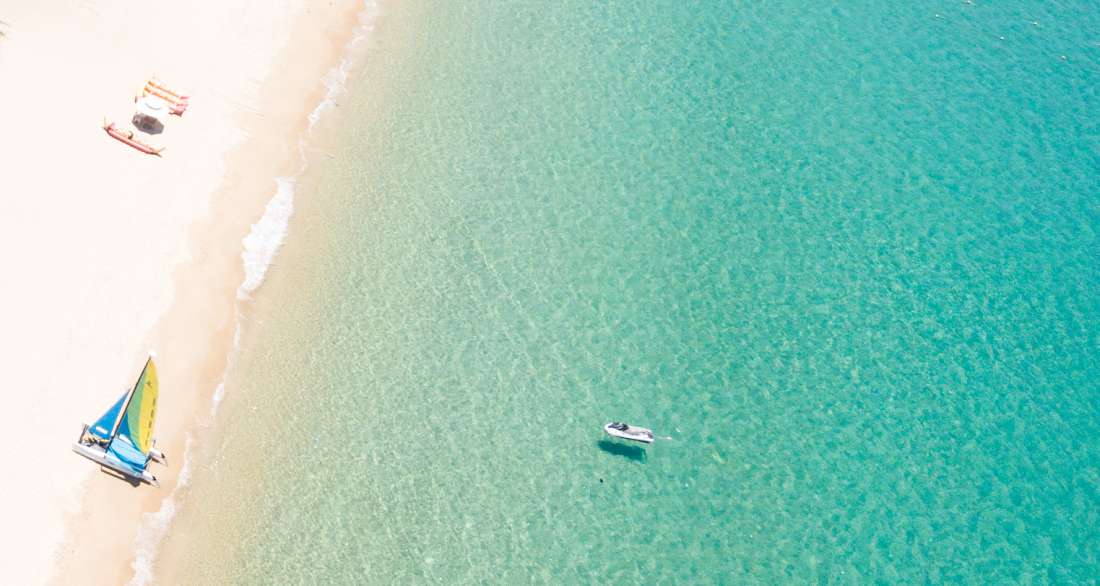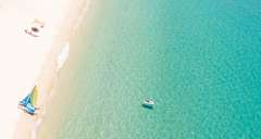 拥有7000米的银白色海滩,沙质细腻、海水洁净透明,可清楚观赏珊瑚,远望呈现几种不同的蓝色。