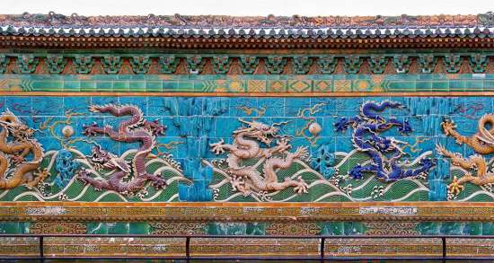 位于紫禁城宁寿宫区皇极门外,是一面背倚宫墙而建的单面琉璃影壁,为乾隆年间烧制而成的。