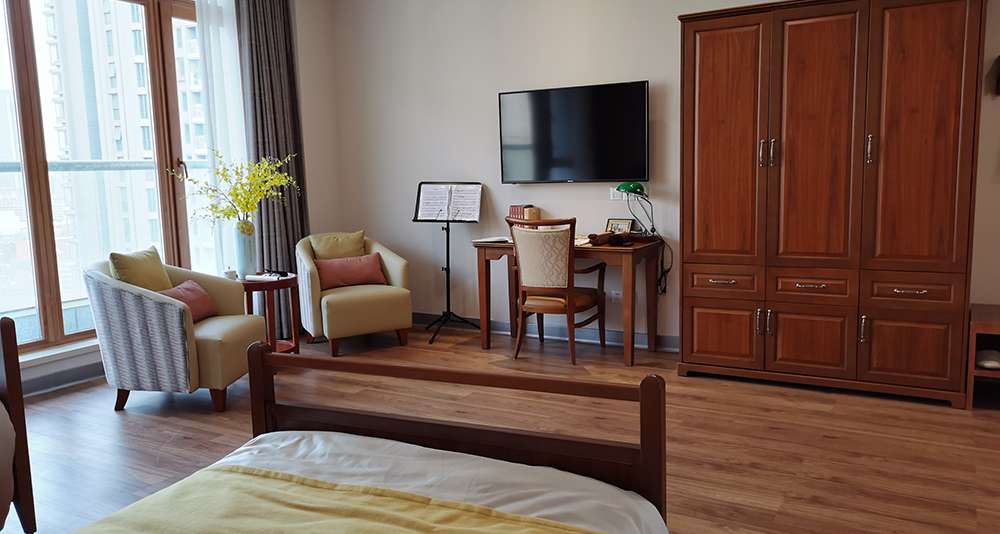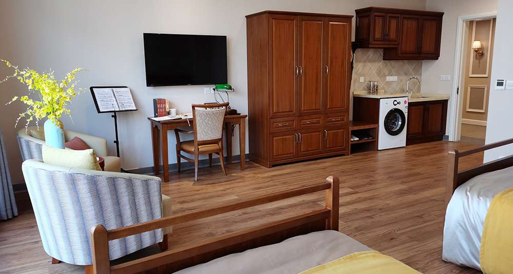 很多专业设备、家具、康复器具来自美国最大的养老设备供应商Direct Supply 统一供货。细节成就品质。软包类家具产品硬度合适,根据不同身体状况的老人做定制化的床垫配置,在不同的部位采用不同密度的海绵,配合适当的护理实现减压及压力再分布,以达到预防压疮的目的,使用舒适。