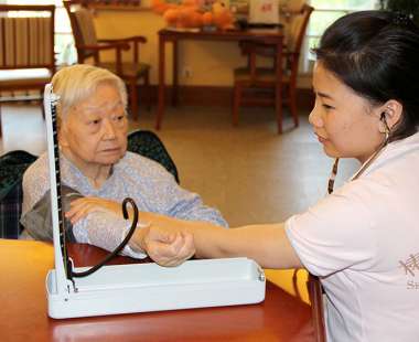 椿萱茂(北京•北苑)老年公寓与国内各大专业院校建立合作关系,长期输送护理、社会工作者等相关专业人员,能为入住的及周边的老年人提供更专业、更科学的护理、心理疏导和精神慰藉服务。每位护理人员上岗前均须经过3个月以上的“椿萱护理服务体系”的专门培训和考核,并在工作中接受专业的内外部继续教育、培训和考核。椿萱茂致力于打造以“乐趣(文体活动)”、“乐和(社交活动)”、“乐观(心理辅导)”、“乐活(生活照料)”、“乐享(增值服务)”、 “乐园”(硬件设施)六大主题为轴线的“生活之场”,为每位入住长辈营造“退而不休”的快乐生活。