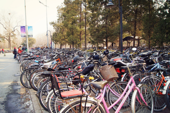 校园里有许多租车的地方。大多是自行车。我们这天走了比较累了,就租了一辆电动车。50元1个小时。自行车是20元一人,随意玩多久。