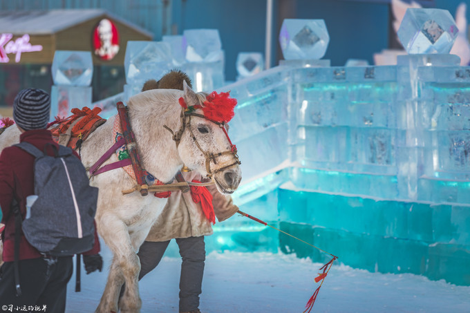 冰雪大世界除了观赏这里冰城和冰雕的艺术之外,还有很多好玩的体验项目, 比如 王牌项目冰雪大滑梯(320米),不过排队时间比较长,因为玩的人比较多,大滑圈,十二生肖滑冰车,滑雪场,冰上自行车,雪地转转等都可以进行玩耍,在景区内也可以乘坐他们的马拉雪橇( 东北 的马真的体肥毛长,应该只有这样才可以更好的御寒和工作吧)和复古小火车。