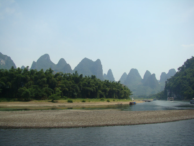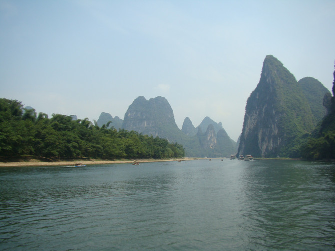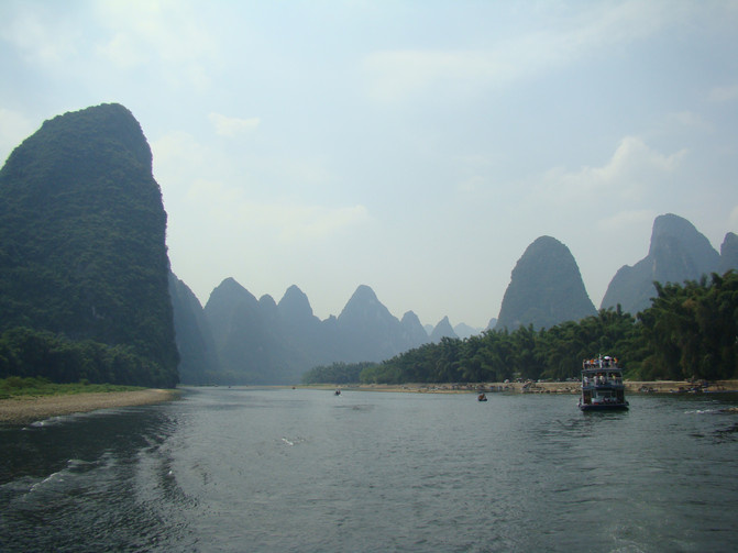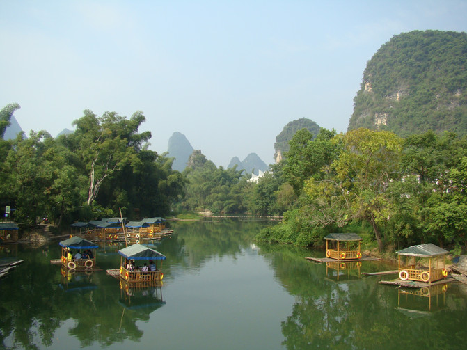 今天出发坐船去阳朔,在携程订的上仓豪华游轮。整个行程约4个小时,在船上吃的盒饭(含在船票里)。桂林山水真是甲天下,在漓江上整个行程基本上都是在甲板上观景拍照,根本没有时间享受豪华游轮的舒适设施。下午2点左右到达阳朔,乘坐当地指定的电瓶车(每位15元)直奔预订的,入住休息。