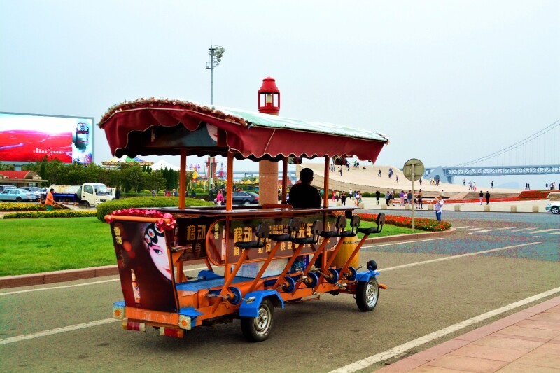 这是卖啤酒的流动啤酒吧。每年的7月底8月初,会在广场上举办一年一届的中国国际啤酒节,届时会有各大酒商以及各地的游客前来品鉴。