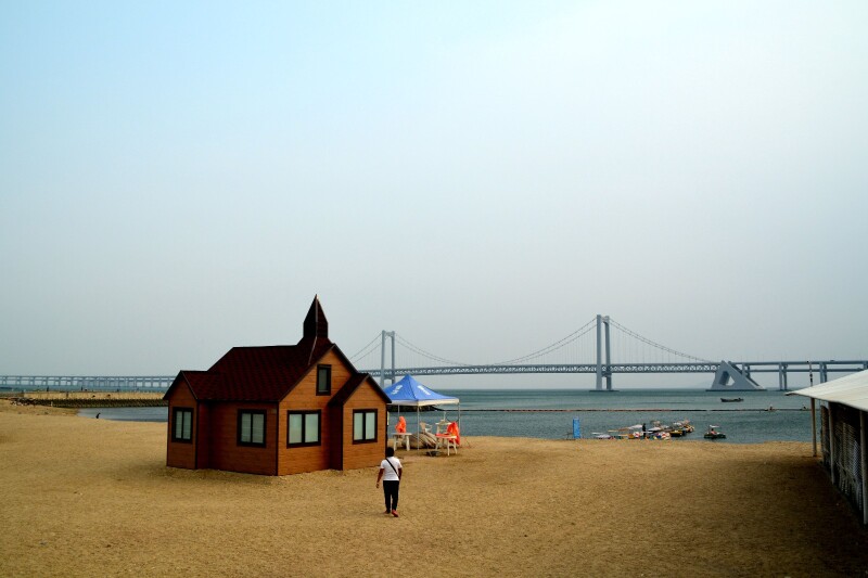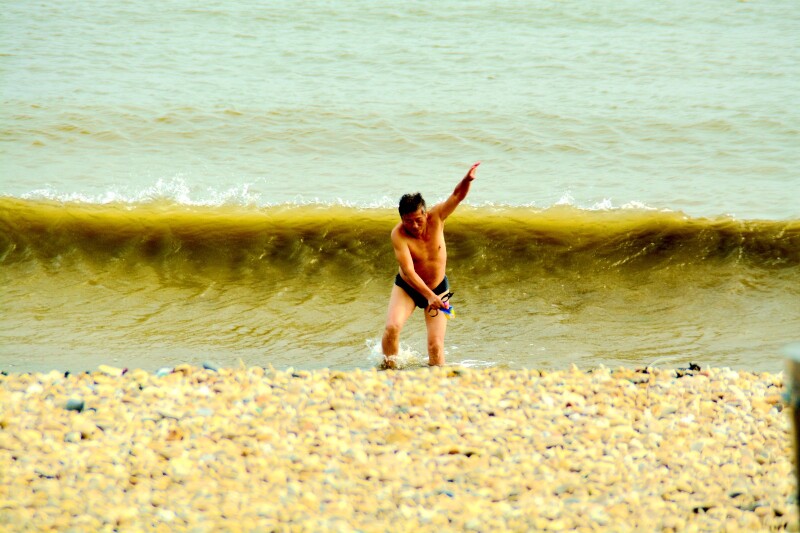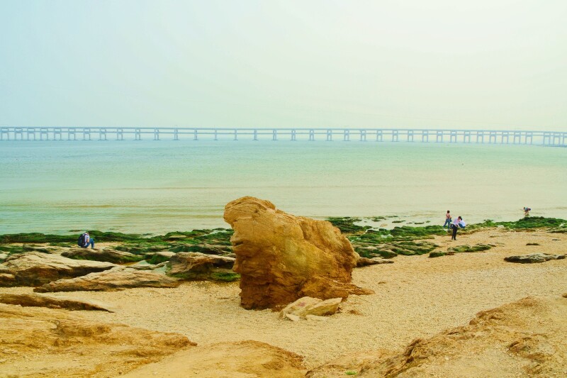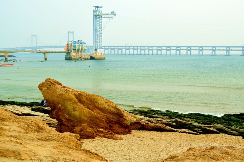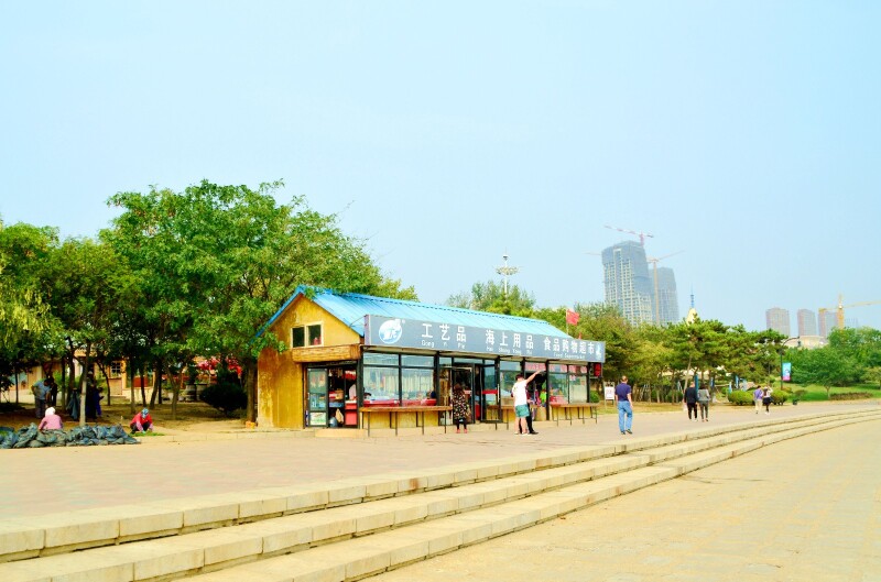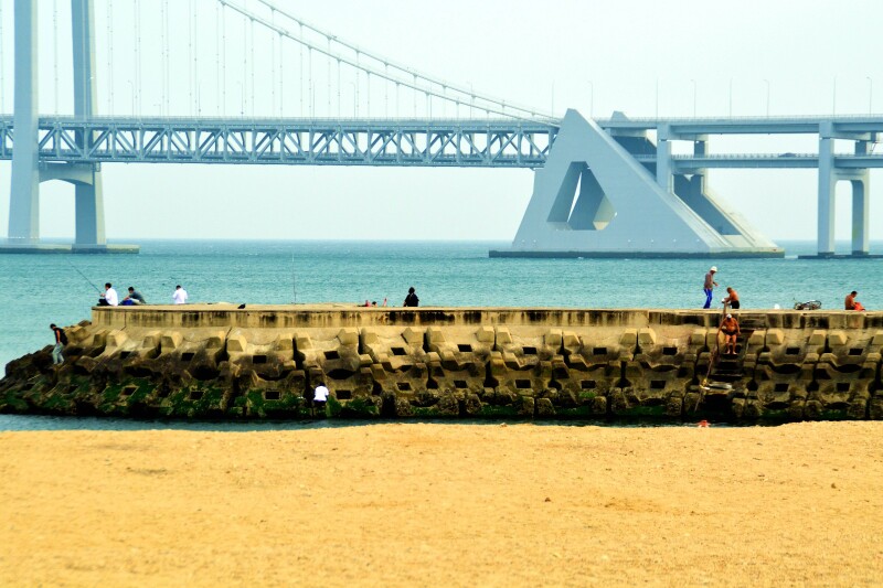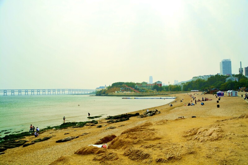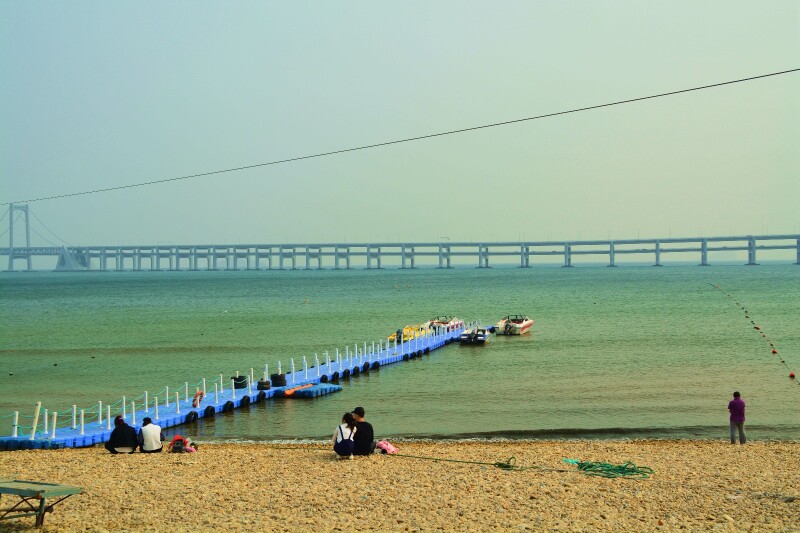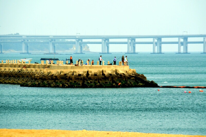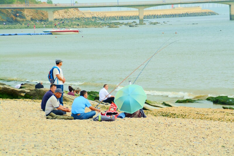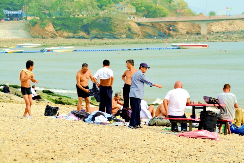 不少老头在海边游泳和钓鱼。海水变得又混又黄,比黄浦江的水还要差 。这里已经不完全不是渤海了,而更加像黄海,东海。