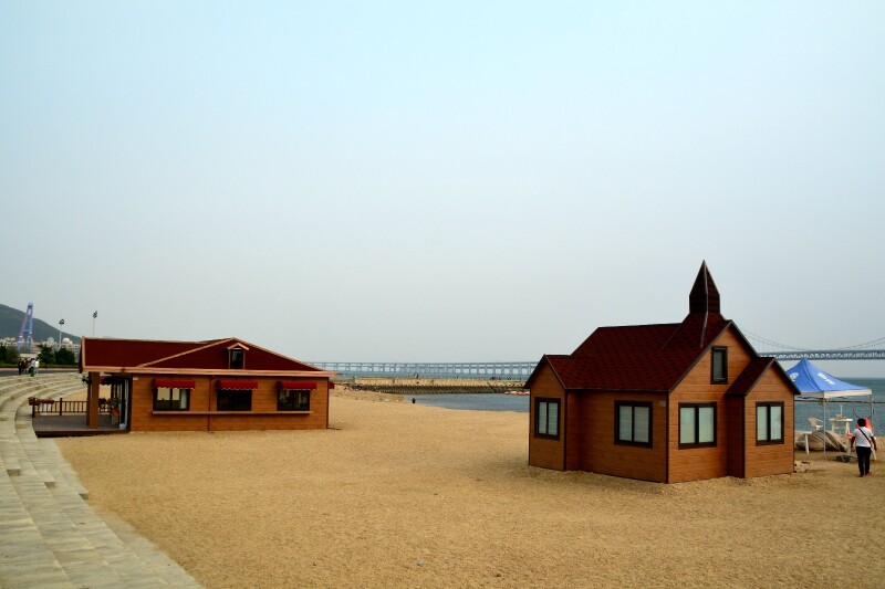 接下来我们去了著名的星海公园。山青水秀的星海公园,位于大连南部星海湾景区的中段。始建于1909年,是一座由陆地公园和海滨浴场组成的海滨公园。因海湾水面上露出一块形状奇特的巨石,传说它是来自天外的“星石”,故得名“星海”。公园占地19万平方米。是集观海、避暑、海水浴于一体的综合性大型海滨公园。星海公园现分为游览区、休息区、儿童游乐园、海水浴场四部分。