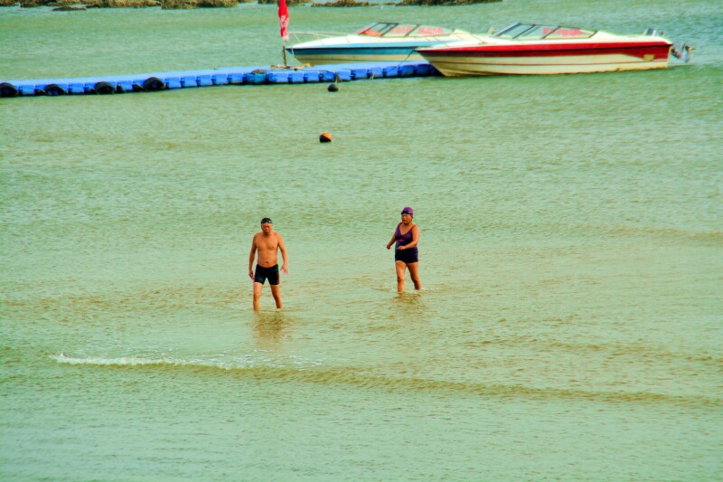 40多年以前,我们夫妻就来到过这里。当时我仗着年轻,会水性,还下海去游泳,那个时候海水比现在清很多很多。40多年前海水看上去是非常清的,但是游泳完毕上来,身上挂有一层机油。要去旁边用木板搭建的简易冲淋房,肥皂要嚓洗3次,才能洗干净。但是冲淋房免费。当时很少有大连人下海游泳,也只有我们这种外地来的,不明就里地下海游泳,整了一身机油。 我估计这些下水的老人家,一定都是从别的地方来的。一个个傻逼呵呵的,晒得黝黑。自己感觉挺美,属不知道水有多么脏。