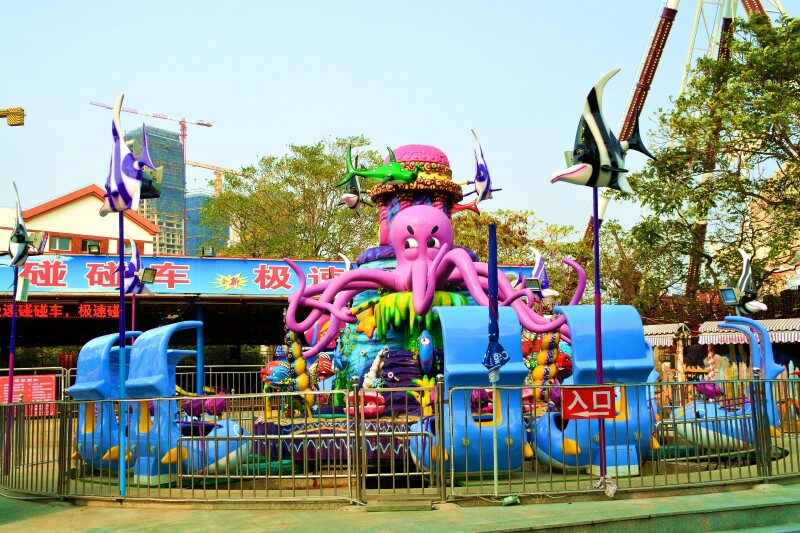 东方游乐场,现在增添了很多游戏机,五颜六色的。 下面照片是我一路上拍的,这么多游戏机,居然只有2个小孩在玩,爸爸妈妈站在旁边看。现在是9月份,正是应该玩的季节。嗨,冬天怎么办?这些老板投资肯定要失败噢。