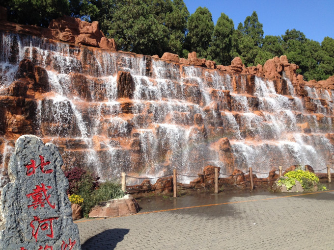 双鱼广场:广场总面积约3600平方米,由两条巨型沙雕和中心涌泉景观组成,两条沙雕飞鱼各长50米,是景区内单体占地面积最大的沙雕艺术品,由十位雕塑艺术家耗时100天制作而成。广场的形象源于传统的 中国 太极图,两条飞鱼代表着阴阳两仪,中心的涌泉景观代表着生生不息的宇宙万物,彩色透水地坪围绕中心水景形成一只巨眼图案,寓意让我们用眼睛欣赏大自然的美,感受生命的活力。