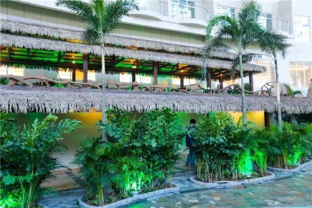 室内温泉由各种热带植物,打造出一个生态的雨林世界。秀色氤氲,水木清华,仿若“海边的丛林仙境,盛开的温泉花园”。真正的实现海水造浪、室内榕树景观、山林温泉、溶洞温泉以及人鱼共游等特色主题于一身的真实体验。