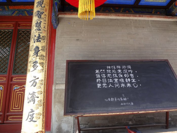 大殿就不拍了,里面五尊文殊菩萨像,也不能拍。几个师父在讨论诵经的细节,很认真。